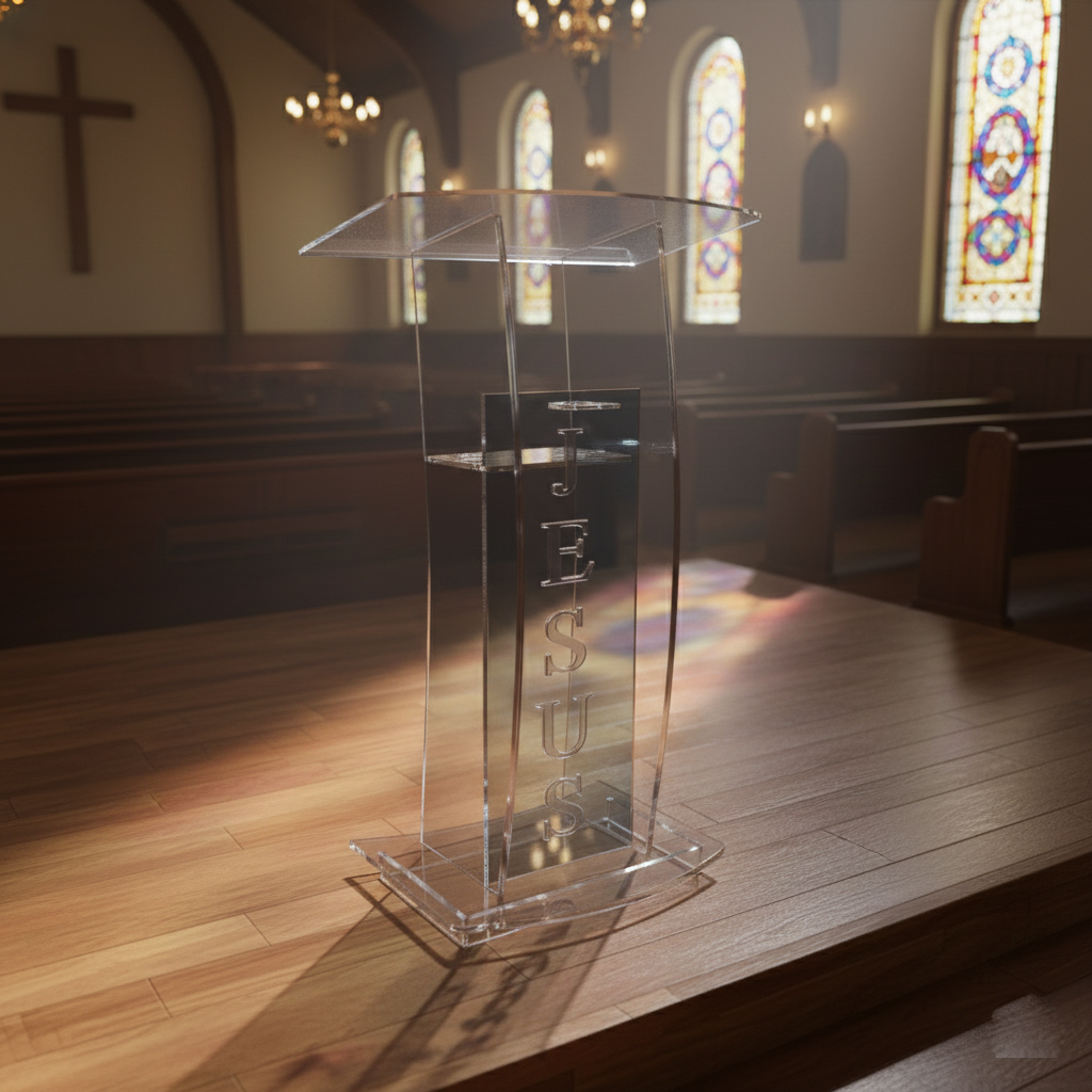 Eleve a experiência do seu culto com um púlpito que combina delicadeza estrutural, elegância resistente e um design que fala de promessas em gestação.