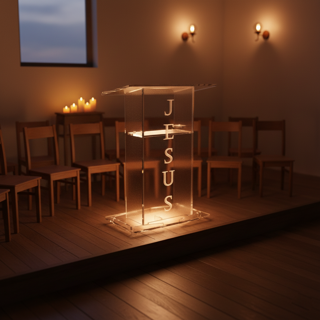 Eleve a experiência do seu culto com um púlpito que combina transparência total, acessoível e uma construção que convida à aproximação, removendo barreiras entre o pregador e a congregação.