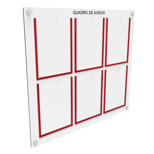 Organização vertical máxima para espaços otimizados! Com seis folhas A4 em colunas, este quadro oferece uma apresentação clean e profissional para seus comunicados.
